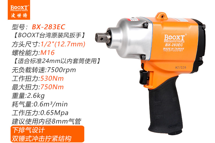 東莞市強(qiáng)勁五金工具有限公司提供臺(tái)灣BOOXT波世特品牌氣動(dòng)工具,雙錘氣動(dòng)扳手BX-283EC廠家直銷(xiāo),首件享特價(jià)。咨詢(xún)熱線:4008301980