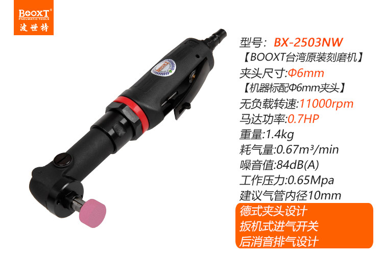 東莞市強勁五金工具有限公司提供臺灣BOOXT波世特品牌氣動工具,彎頭風磨機BX-2503NW廠家直銷,首件享特價。咨詢熱線:4008301980